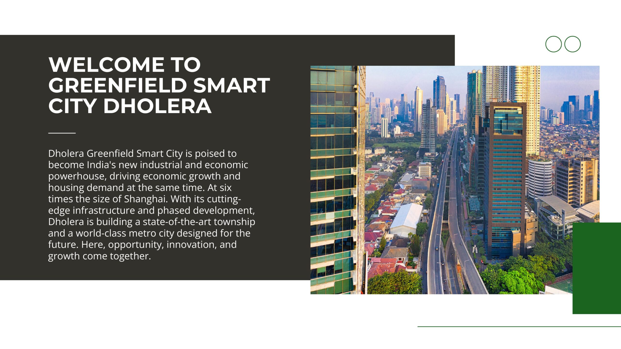 Dholera SIR spans approximately 920 square kilometers, making it six times larger than Shanghai and twice the size of Mumbai. It is India’s largest greenfield smart city project under the DMIC initiative.